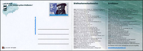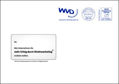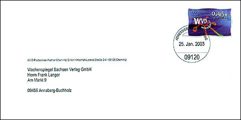Postwurfsendung DIN A5, vom 05. September 2001, Stempellkischee aufgedruckt. |