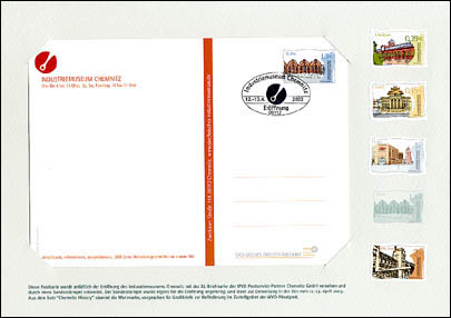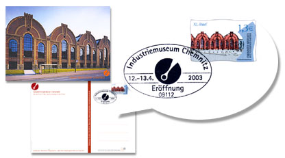 | Offizielle Ersttagspostkarte zur Eröffnung des Chemnitzer Industriemuseums am 12.4.2003 mit Sonderstempel (Keine Ganzsache) |