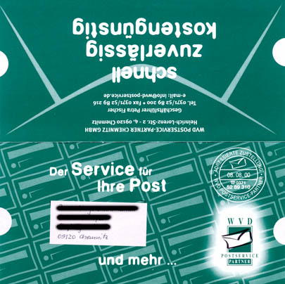 Werbemailing, vom 05. 08. 2000, Stempellkischee aufgedruckt. |